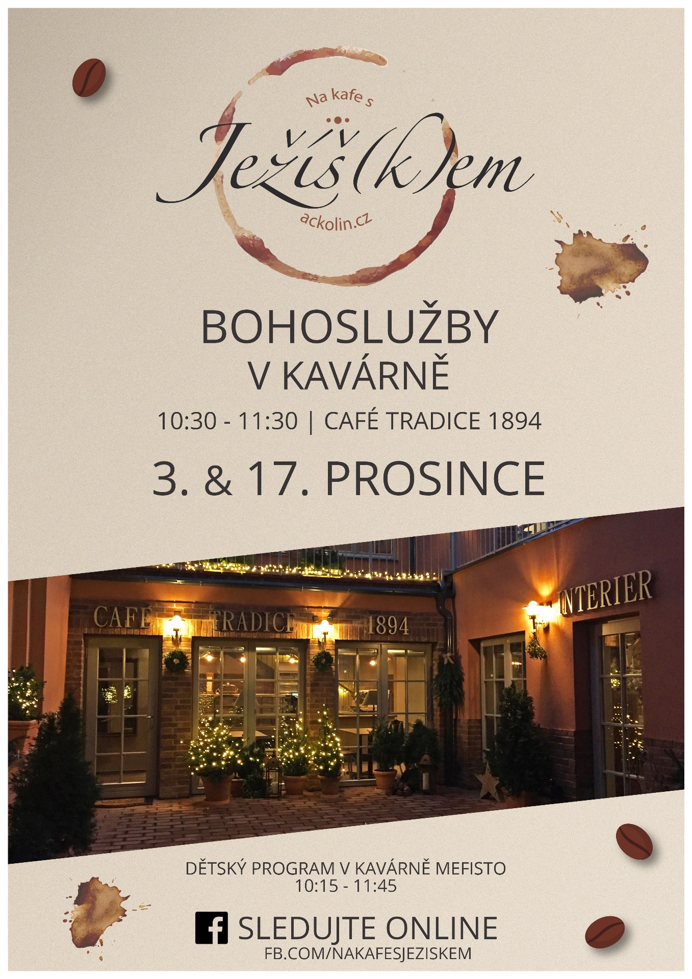 V letošním roce jsme se v Kolíně pustili do smělého projektu s názvem: "Na kafe s Ježíš(k)em" Cílem je potěšit lidi v adventním čase, investovat do vztahů a ukázat, že bohoslužba není omezená na zdi kostelů, ale je možné se setkávat v prostředí běžného života.